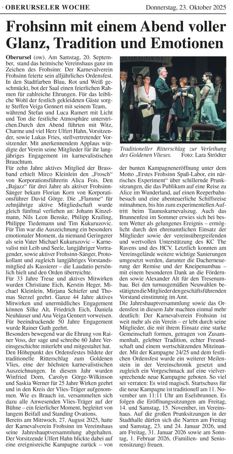 🗓 Am Samstag, den 1.11.2025, präsentiert der KV Frohsinn, in der Stadthalle Oberursel, Musical-Magie aus zwei Jahrzehnten.