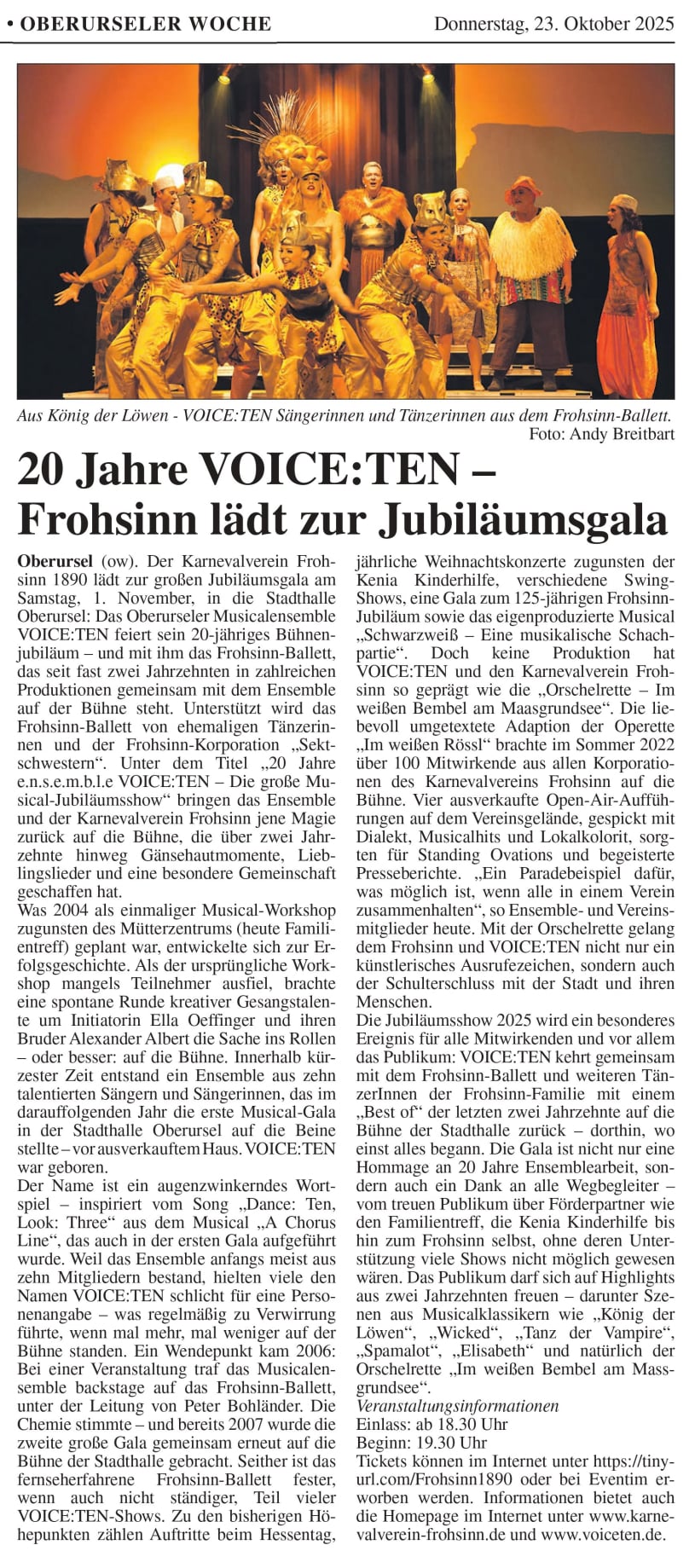 Sei dabei, wenn der KV Frohsinn 20 Jahre VOICE:TEN feiert – sichere dir jetzt deine Tickets für ein unvergessliches Bühnenhighlight! 🎶💫